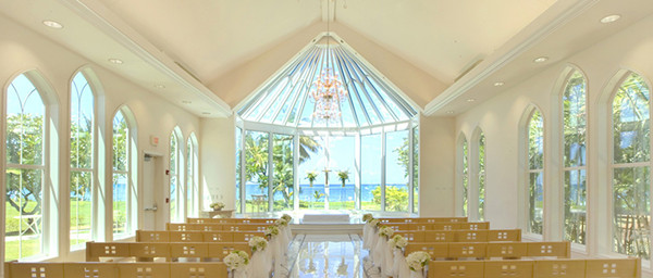 ★ 白色的圣洁与蓝色的浪漫 ★ 纯白色教堂建在一片广阔的绿地之上,直面无边的蓝色海洋。教堂之内全部採用玻璃建造,绚烂的阳光射入玻璃教堂内,加之眼前一望无尽的深蓝色海洋,仿佛让我们投身于另一個神奇的世界。 ■容纳人数 50人 ■圣洁之路 12米 ■海边教堂 是